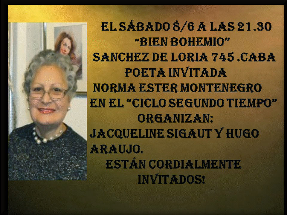 PRESENTACIÓN EN EL CICLO "SEGUNDO TIEMPO " QUE ORGANIZAN JACQUELINE SIGAUT Y HUGO ARAUJO EN BIEN BOHEMIO - 8/06/2013.